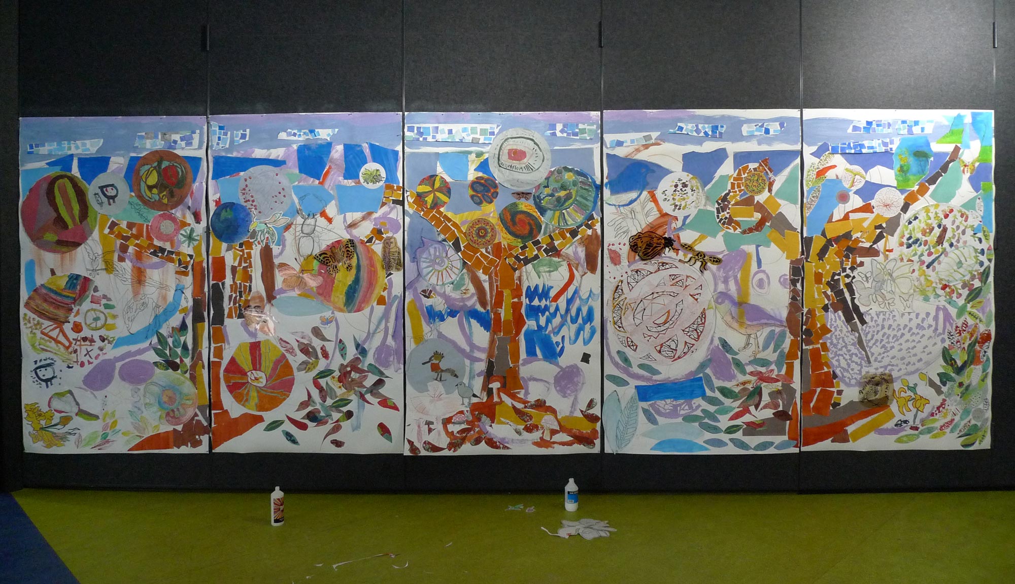 As well as working with pencils and paint, the group has explored collage, print making, sculpture and techniques with fabric and paper machete. Participants are encouraged to find their own way of working with materials while having guidance and instruction available from the facilitator. Collaborative group work is a feature of their activity.